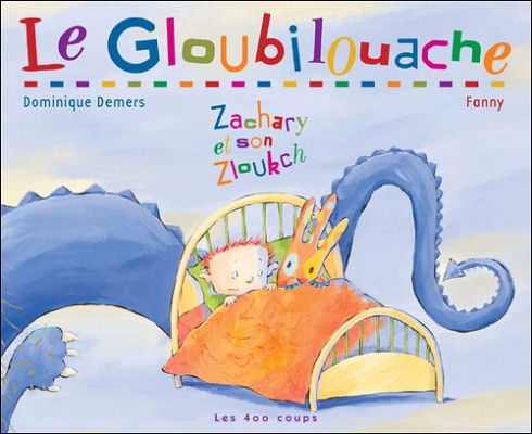 Profitant du manque de vigilance de sa gardienne, Zachary écoute en cachette un film de monstres. À l’heure du coucher, il raconte à son Zloukch, son compagnon de jeu en peluche, l’histoire du Gloubilouache, un monstre horrible et dangereux. Au fil de son histoire, Zachary commence à avoir peur que le monstre existe vraiment. Il dessine vite un château pour s’y réfugier et saute dans l’image avec son Zloukch, le Gloubilouache à ses trousses. Ils se retrouvent dans le royaume de Pataspling et sont accueillis par leurs amis les Patakloung et les Splingnoutch. La bataille entre les deux clans se résout finalement dans la joie avec des friandises. Abordé sous le signe de l’imagination et de l’entraide, l’album encourage de façon amusante à combattre ses peurs nocturnes. Le texte est prenant et dynamique, mais alourdi par les noms complexes des créatures. Les illustrations aux couleurs vives dépeignent un monde imaginaire, sous plusieurs angles, s’accordant ainsi à la fantaisie du texte.